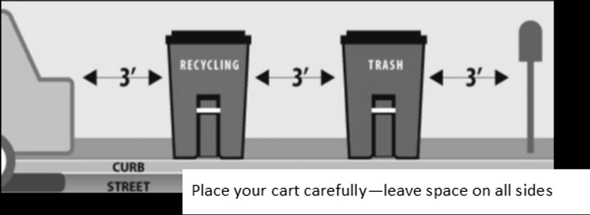 Please make sure your recycling cart is spaced at least 3 feet from other objects/carts.