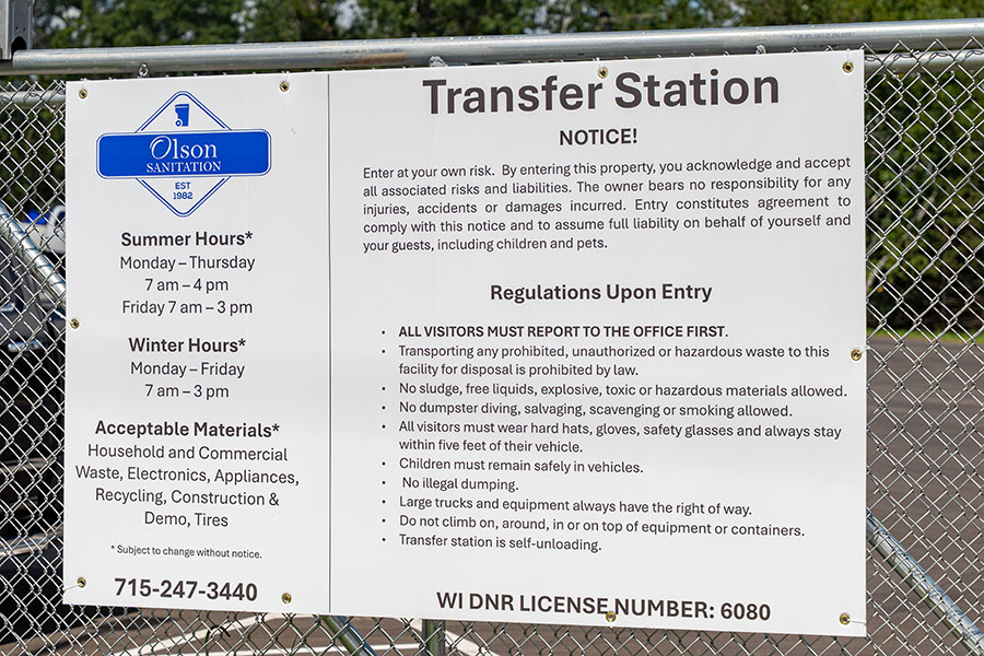 Our new transfer station is open for residential drop off, commercial haulers, and dump trailers. We also offer on-site recycling drop-off.